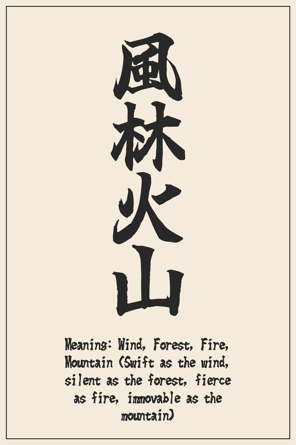 Each character within Fūrin Kazan contributes to its powerful meaning, representing a distinct aspect of strategic mastery.