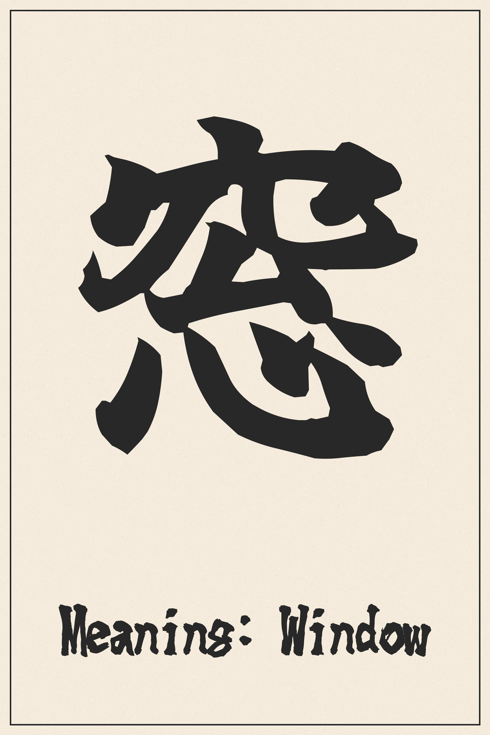 The Kanji 窓, meaning ‘window,’ serves as a poignant symbol of perception and connection. It represents the interface between our inner world and the vastness beyond, offering a framed glimpse into new possibilities.