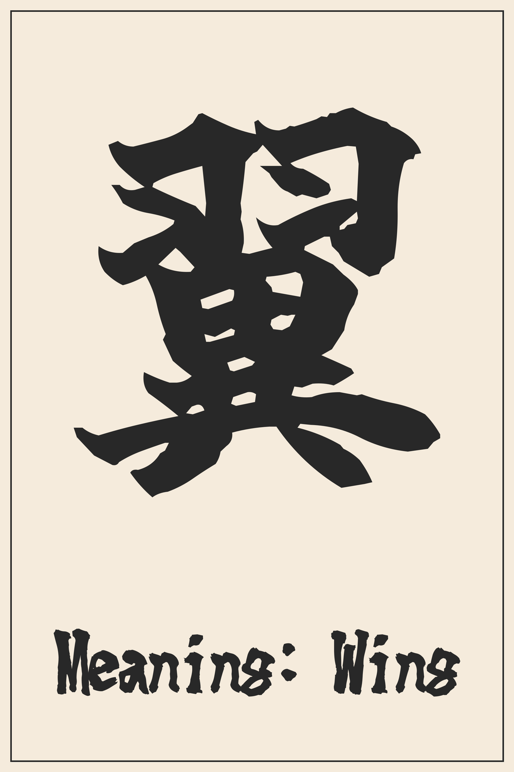 The character 翼 (tsubasa) beautifully captures the essence of flight and elevation. Its origin traces back to ancient pictographs representing a bird’s wing, symbolizing movement, grace, and the ability to soar above earthly confines.