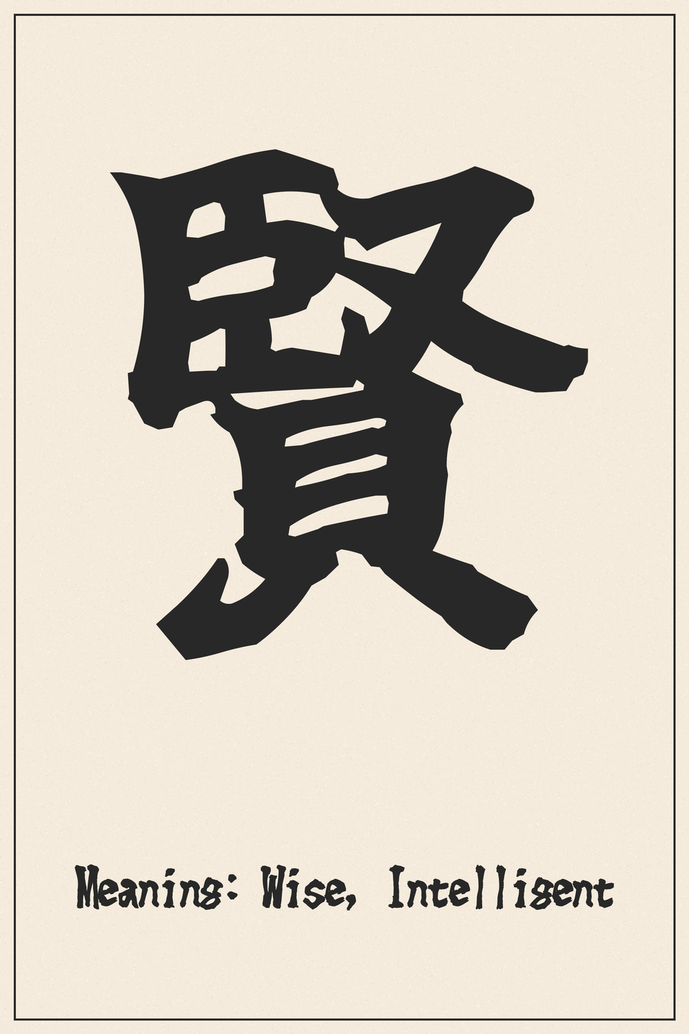 In Japanese culture, wisdom (賢) is not merely about possessing knowledge but also about applying it with prudence and moral integrity. It signifies a person who understands profound truths and makes sound judgments, often associated with venerable figures and sagacious leaders.