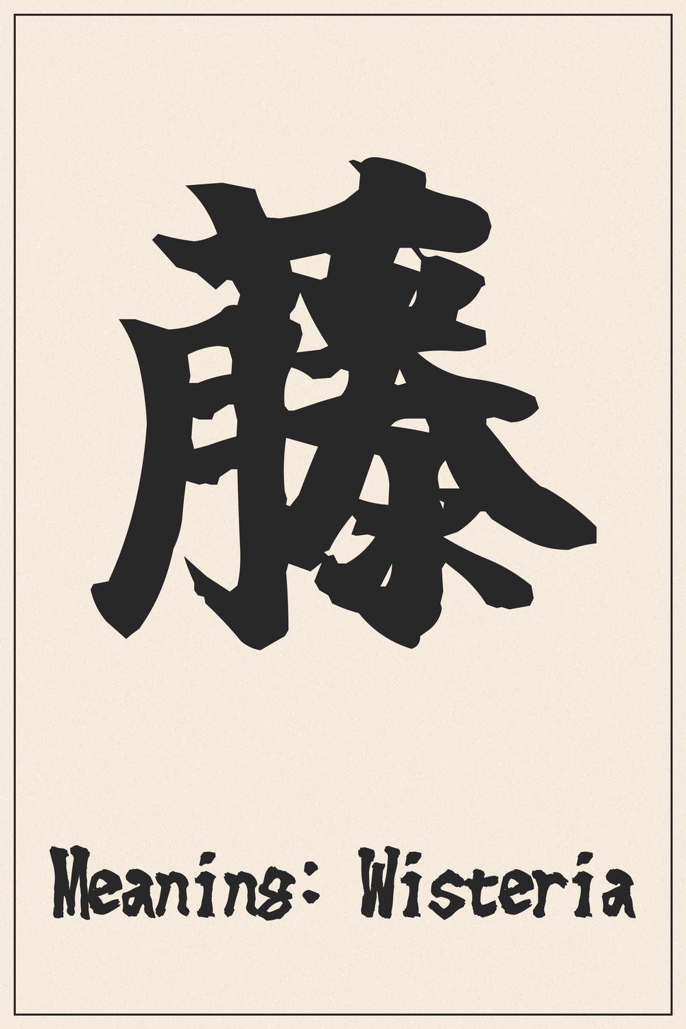 The Kanji 藤 beautifully encapsulates the essence of the wisteria flower: its flowing grace, tenacious growth, and deep cultural resonance. It stands as a powerful symbol of natural beauty, resilience, and historical elegance.