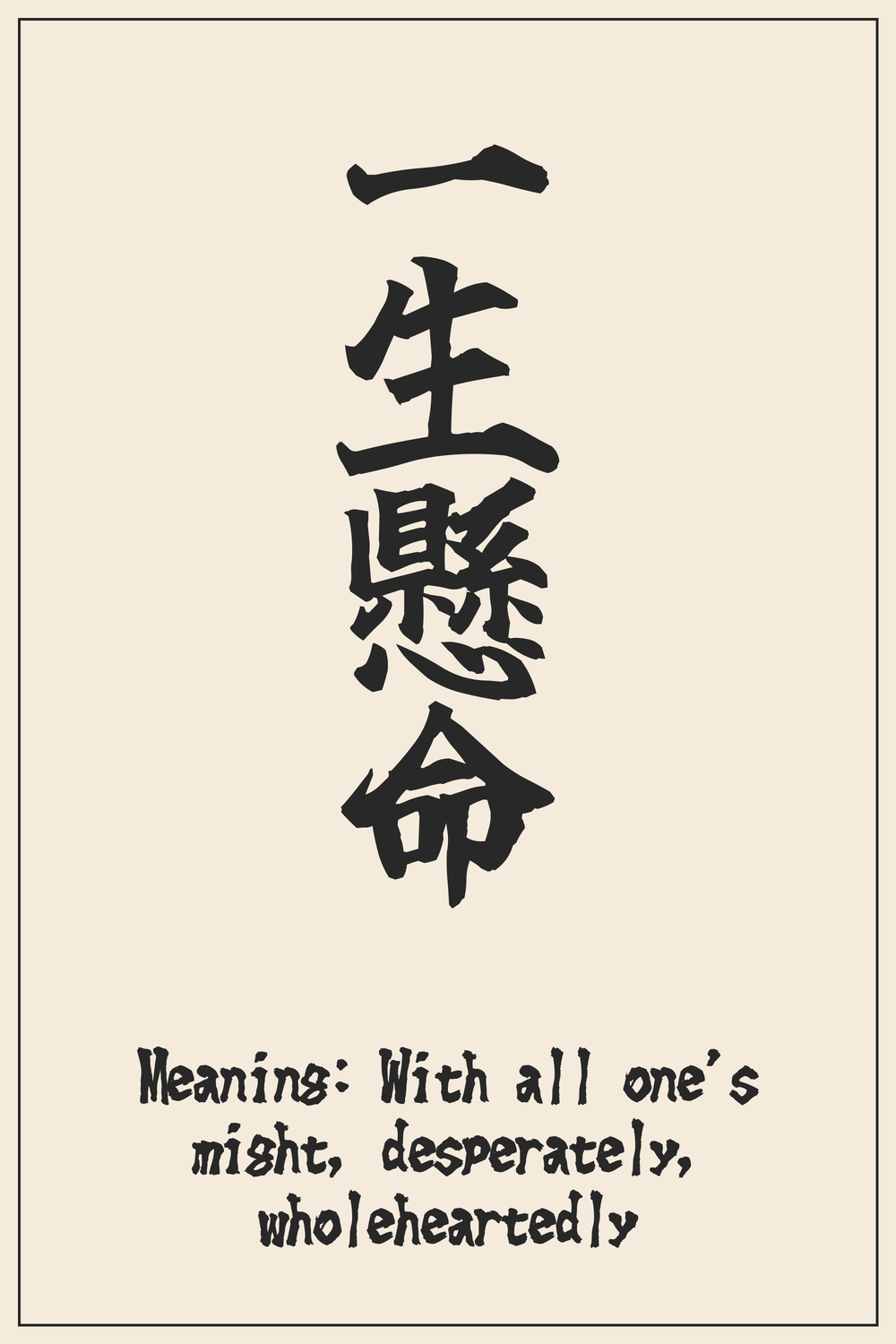 “一生懸命” is more than just effort; it’s a profound declaration of complete devotion. It encapsulates the Japanese spirit of pouring every ounce of one’s being into a goal, embodying unwavering perseverance and the relentless pursuit of excellence in all aspects of life.