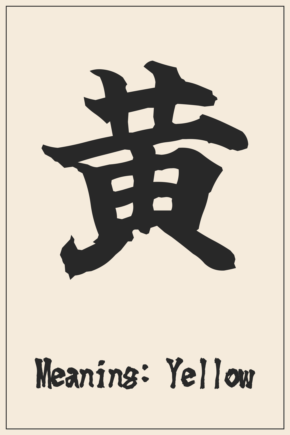 The Kanji 黄, representing ‘Yellow,’ is a versatile and visually appealing symbol, rich with cultural and natural associations. It evokes feelings of joy, warmth, and vitality, as well as the abundance of the earth.
