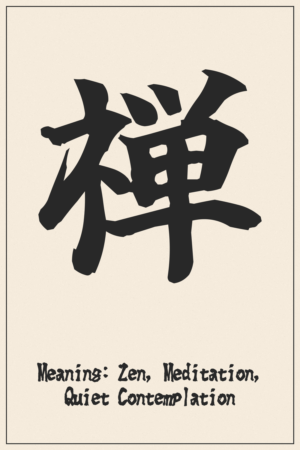 The Kanji ็ฆ (Zen) elegantly combines elements that hint at its meditative essence.